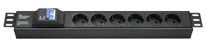 R519SH6CB | БРП 19" 16A с автоматом 2P Вых:6ХSchuko Вх:SchukoX2м | ДКС